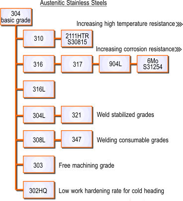 The relationship between the various austenitic grades is shown in Figures 2.