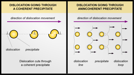 Для некогерентных осадков разница между матрицей и осадками мутирует. Нет способа толкнуть ряд атомов в матрице, потому что они не связаны с осадком. Если достаточно силы, чтобы протолкнуть ряд атомов, материал может треснуть.